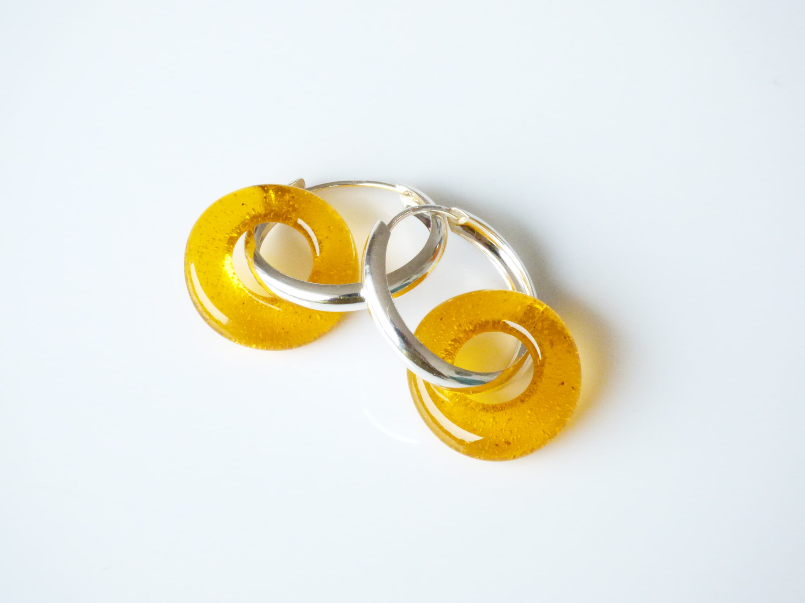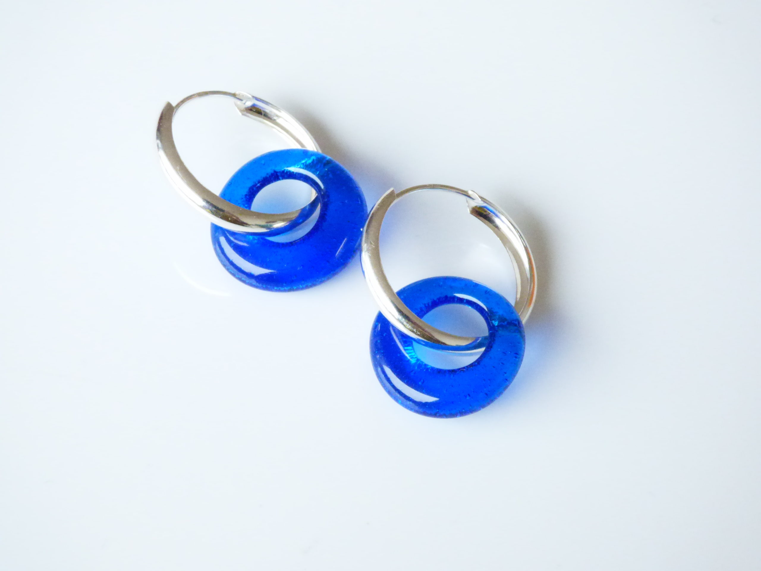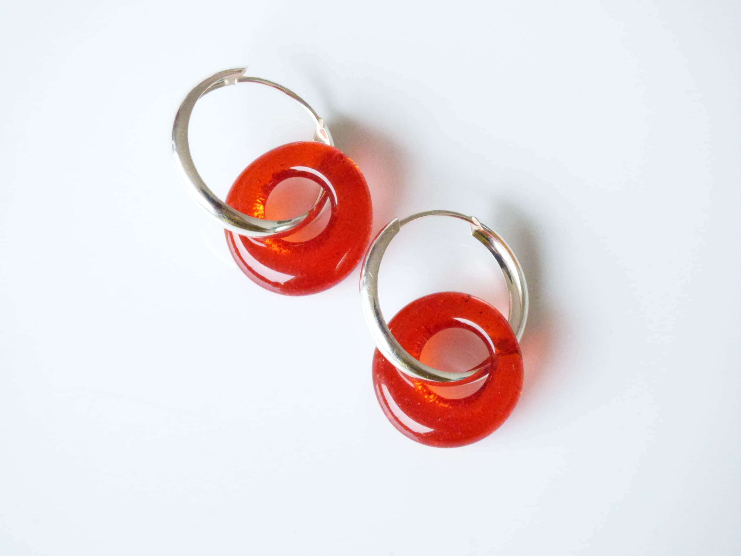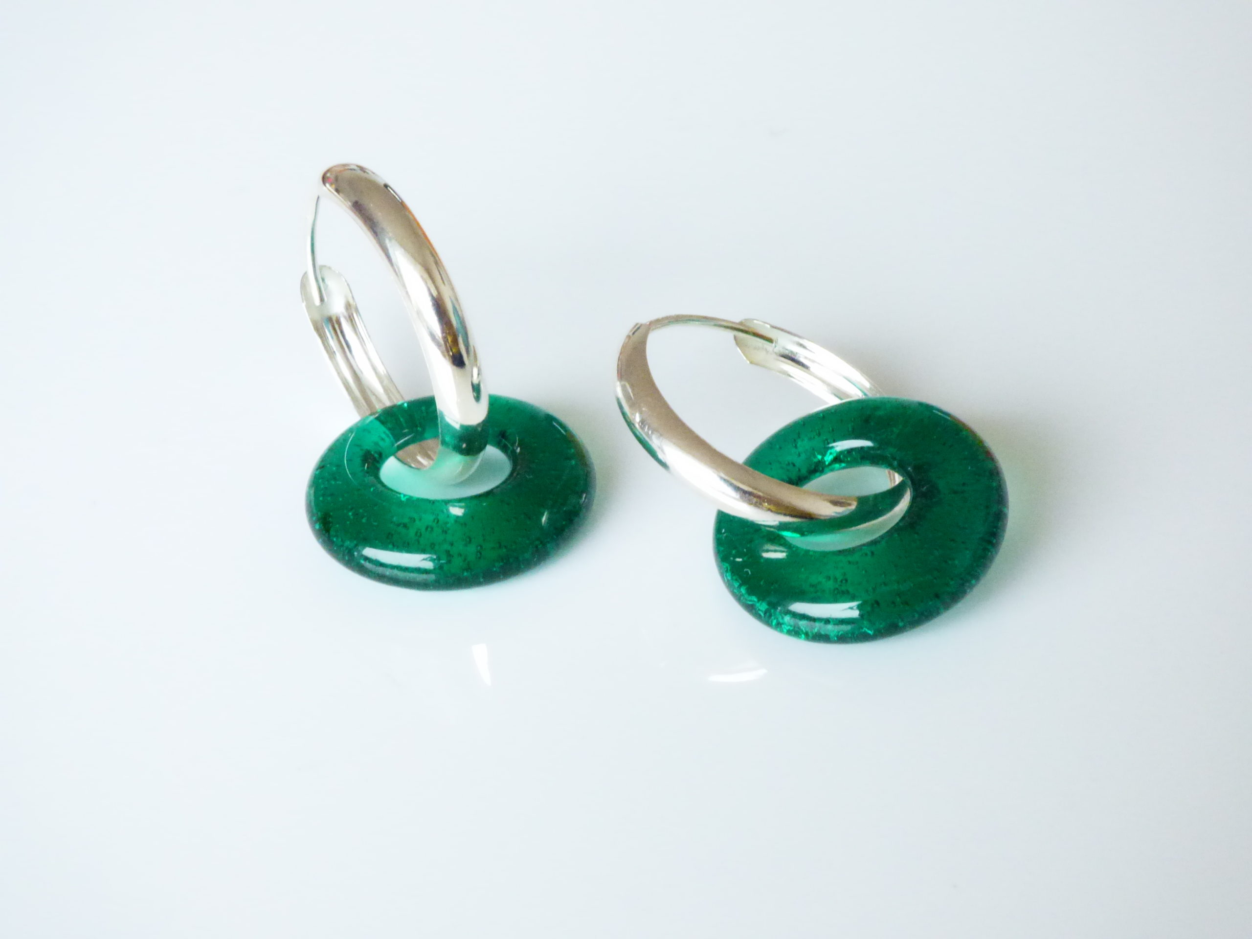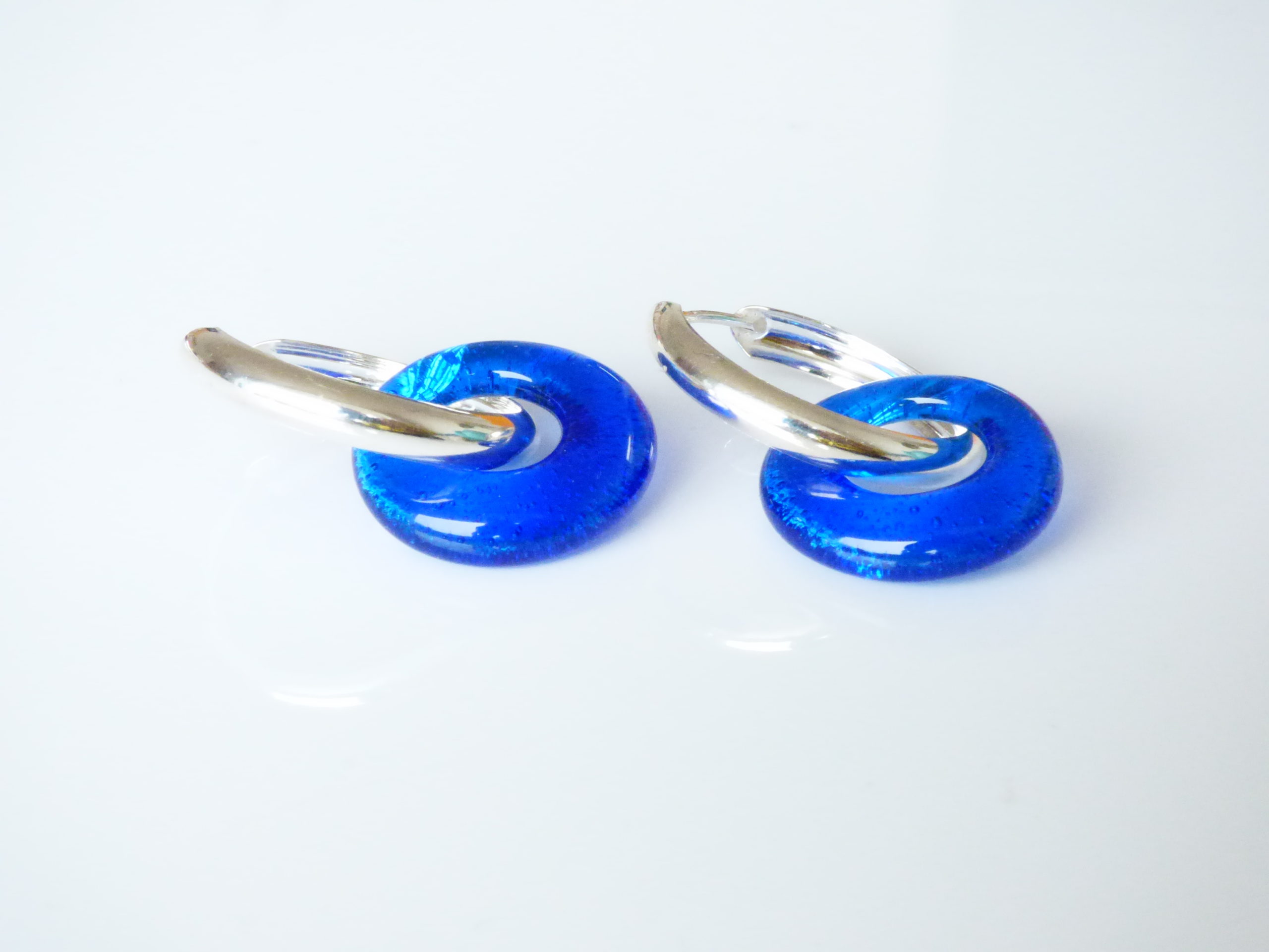 Silberne Ohrhänger mit einzigartigen Kreisen aus ofen-geschmolzenem Glas.